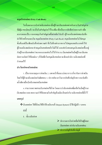 โดยให้ผู้รักษำเงินสดย่อยรับผิดชอบ 3. ประหยัดเวลำในกำรบันทึกบัญชี เพรำะจะบันทึก