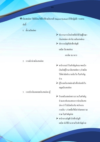❖ เงินสดย่อย วิธีที่นิยมใช้คือวิธีวงเงินคงที่ (Impest System) มีวิธีปฏิบัติ 3 นตอน