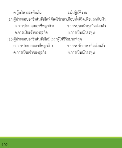 14.ผู้ประกอบอาชีพในข้อใดที่ต้องใช้เวลาเกือบทั้งชีวิตเพื่อแลกกับเงิน