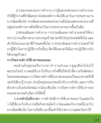 2.3 ผลกระทบของการท างาน การรู้ผลกระทบของการท างานจะ
