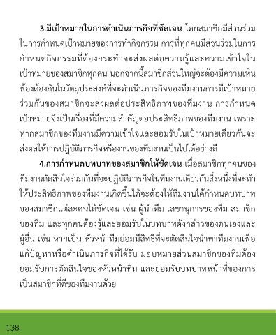 3.มีเป้าหมายในการด าเนินภารกิจที่ชัดเจน โดยสมาชิกมีส่วนร่วม