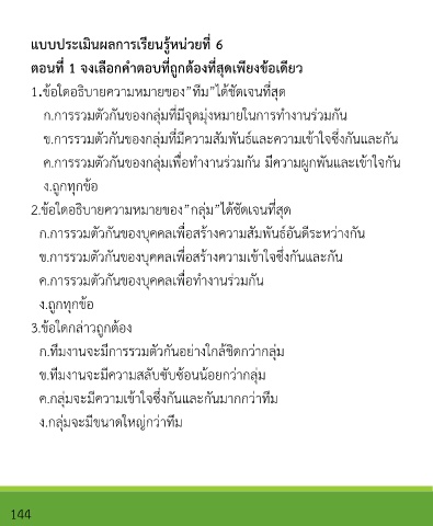 1.ข้อใดอธิบายความหมายของ”ทีม”ได้ชัดเจนที่สุด