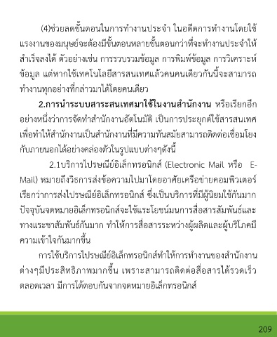 การใช้บริการไปรษณีย์อิเล็กทรอนิกส์ท าให้การท างานของส านักงาน