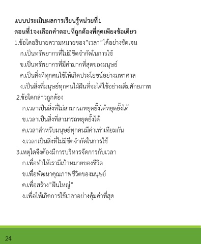 1.ข้อใดอธิบายความหมายของ”เวลา”ได้อย่างชัดเจน