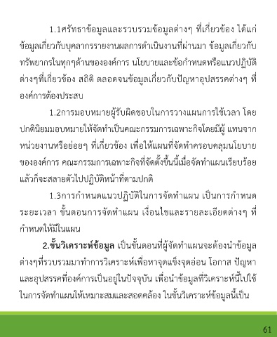 ในการจัดท าแผนให้เหมาะสมและสอดคล้อง ในขั้นวิเคราะห์ข้อมูลนี้เป็น