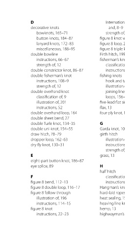 double bowline Firth hitch, 199 double constrictor knot, 86–87