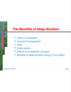 What is compaction Causes of compaction Soils Grass plants Effects of compaction on grass Benefits of deep aeration using a Terra Spike Wiedenmann GmbH Folie 2 The Benefits of Deep Aeration The Benefits of Deep Aeration
