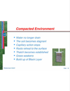 Water no longer drain The soil becomes stagnant Capillary action stops Roots retreat to the surface Thatch becomes established Grass weakens Build up of Black Layer Wiedenmann GmbH Folie 10 Compacted Environment Compacted Environment