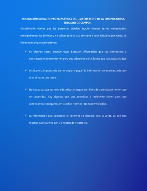 INDAGACIÓN SOCIAL DE PROBLEMÁTICAS DEL USO CORRECTO DE LA COMPUTADORA.