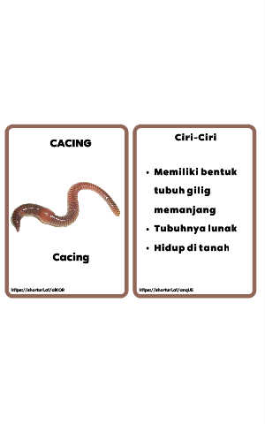 Ciri-Ciri CACING Memiliki bentuk tubuh gilig memanjang Tubuhnya lunak Hidup di tanah Cacing https://shorturl.at/aiKOR https://shorturl.at/anqU5