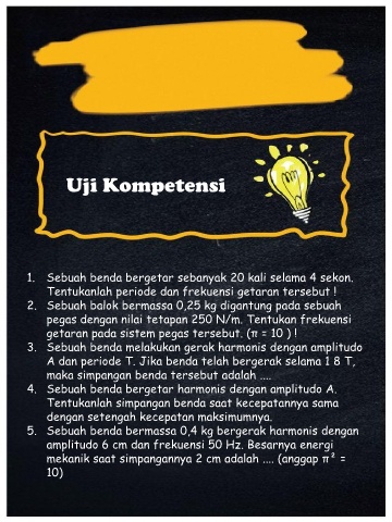 1. Sebuah benda bergetar sebanyak 20 kali selama 4 sekon.