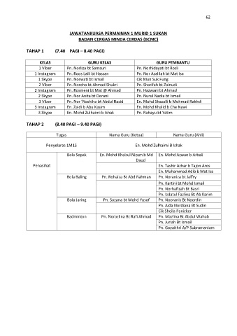 JAWATANKUASA PERMAINAN 1 MURID 1 SUKAN