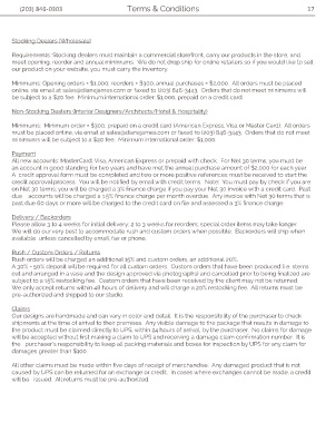 Minimums: Opening orders = $1,000; reorders = $300, annual purchases = $2,000. All orders must be placed