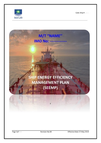Code Ship # - - - - _________________________________________________________________________________ M/T “NAME’’ IMO No: ------------- SHIP ENERGY EFFICIENCY MANAGEMENT PLAN (SEEMP) F Page 1of - - - Revision No.00 Effective Date:22 May 2019