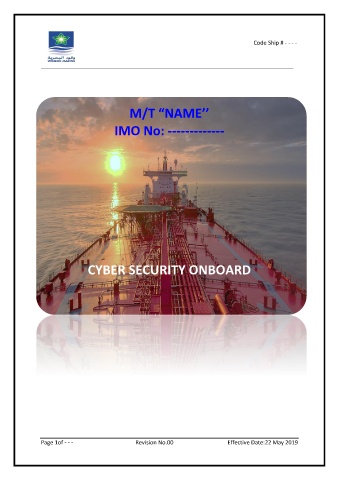 Code Ship # - - - - _________________________________________________________________________________ M/T “NAME’’ IMO No: ------------- CYBER SECURITY ONBOARD Page 1of - - - Revision No.00 Effective Date:22 May 2019