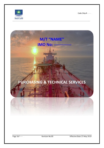 Code Ship # - - - - _________________________________________________________________________________ M/T “NAME’’ IMO No: ------------- PURCHASING & TECHNICAL SERVICES Page 1of - - - Revision No.00 Effective Date:22 May 2019