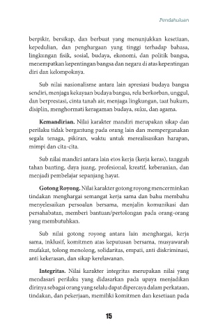 Sub nilai mandiri antara lain etos kerja (kerja keras), tangguh