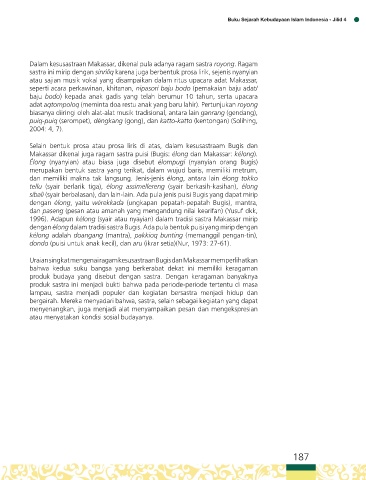 1996). Adapun kélong (syair atau nyayian) dalam tradisi sastra Makassar mirip