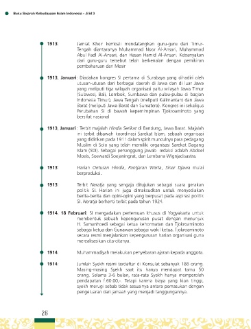 1913, Januari: Diadakan kongres SI pertama di Surabaya yang dihadiri oleh