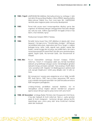 1985, 7 April: LAKPESDAM NU didirikan. Bermarkas di Jakarta, lembaga ini lahir