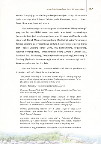 Menurut Terjemahan Lontar Pattodioloan di Mandar yakni Lontarak