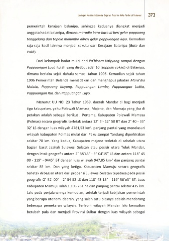 beberapa pemekaran wilayah. Terlebih wilayah Mandar lalu kemudian