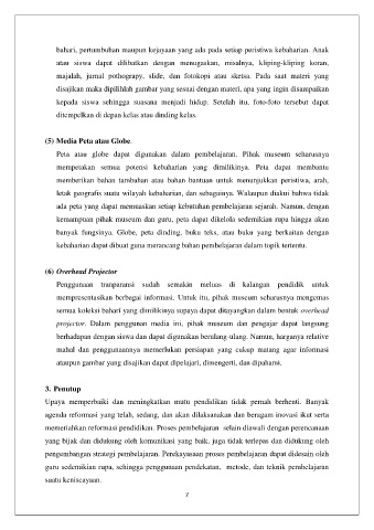 Peta atau globe dapat digunakan dalam pembelajaran. Pihak museum seharusnya