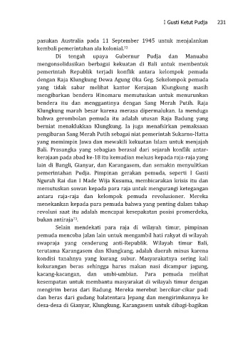 pemerintahan Pudja. Pimpinan gerakan pemuda, seperti I Gusti