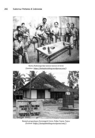 282 Gubernur Pertama di Indonesia Sketsa Ratulangi dan kawan-kawan di Serui (Sumber: https://lanisphotoblog.wordpress.com/) Rumah pengasingan Ratulangi di Serui, Pulau Yapen, Papua (Sumber: https://lanisphotoblog.wordpress.com/).