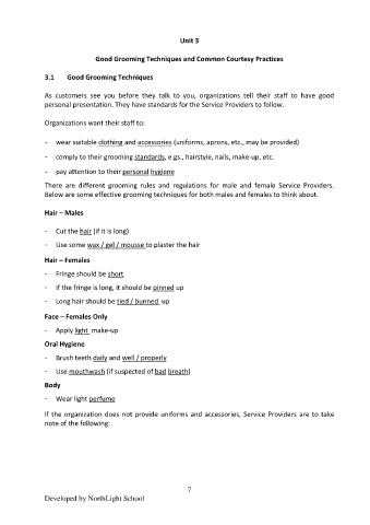 - wear suitable clothing and accessories (uniforms, aprons, etc., may be provided)
