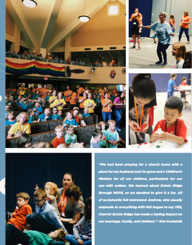 “We had been praying for a church home with a place for my husband and I to grow and a Children’s Ministry for all our children, particularly for our son with autism. We learned about Scioto Ridge through MOPS, so we decided to give it a try. All of us instantly felt welcomed. Andrew, who usually responds to everything with NO! began to say YES, Church! Scioto Ridge has made a lasting impact on our marriage, family, and children.” -Kim Kostelnik
