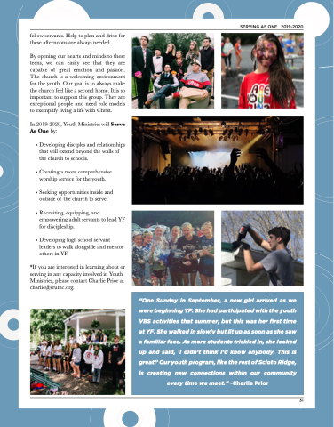 In 2019-2020, Youth Ministries will Serve As One by: