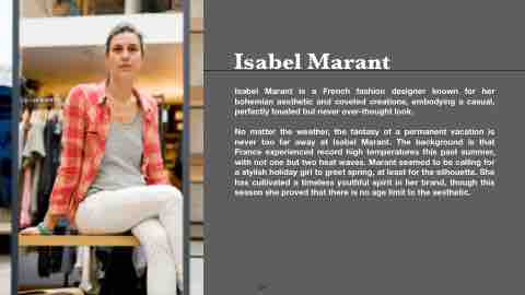 Isabel Marant is a French fashion designer known for her bohemian aesthetic and coveted creations, embodying a casual, perfectly tousled but never over-thought look.