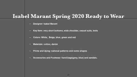 Key Item: very short bottoms, wide shoulder, casual suits, knits Colors: White, Beige, blue, green and red