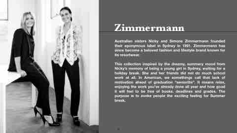 Australian sisters Nicky and Simone Zimmermann founded their eponymous label in Sydney in 1991. Zimmermann has since become a beloved fashion and lifestyle brand known for its resortwear.