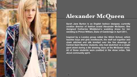 Sarah Jane Burton is an English fashion designer, currently creative director of fashion brand Alexander McQueen. She designed Catherine Middleton's wedding dress for her wedding to Prince William, Duke of Cambridge in April 2011.
