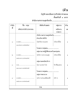 กลุ่มงาน หมายเหตุ เงินเพิ่มการ จํานวนเงิน อัตราค่าตอบแทน ตําแหน่ง ครองชีพ ค่าตอบแทน ใหม่ เดิม เลขที่ พนักงาน ชั่วคราว ที่ได้ปรับ ราชการ - 3,370 15,330 11,960 10 บริหารทั่วไป - 3,130 15,820 12,690 15 บริหารทั่วไป - 4,200 15,490 11,290 16 วิชาชีพเฉพาะ 1,500 1,710 8,690 6,980 17 บริการ 1,500 12,41