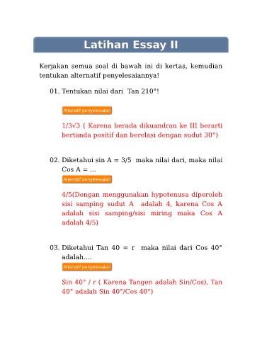 03. Diketahui Tan 40 = r maka nilai dari Cos 40°