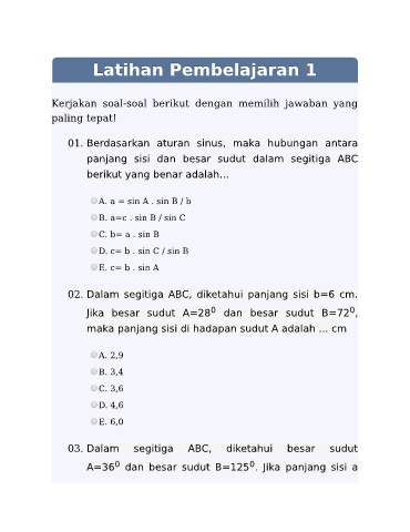 01. Berdasarkan aturan sinus, maka hubungan antara