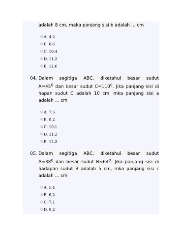hadapan sudut B adalah 5 cm, mka panjang sisi c