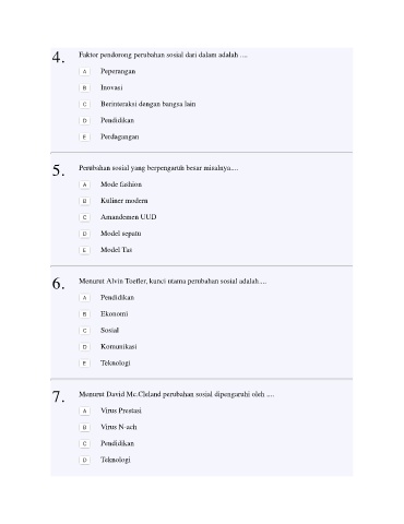 6.      Menurut Alvin Toefler, kunci utama perubahan sosial adalah....