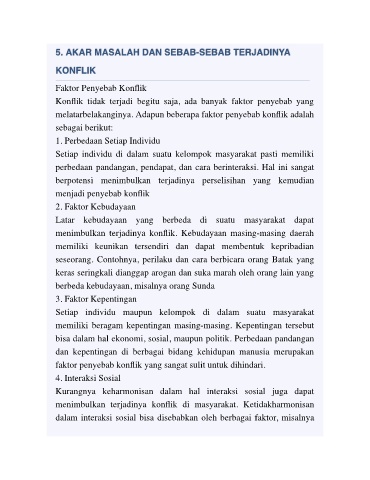 Konflik tidak terjadi begitu saja, ada banyak faktor penyebab yang