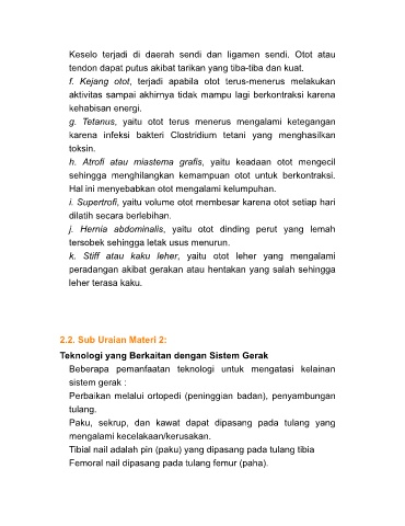 f. Kejang otot, terjadi apabila otot terus-menerus melakukan