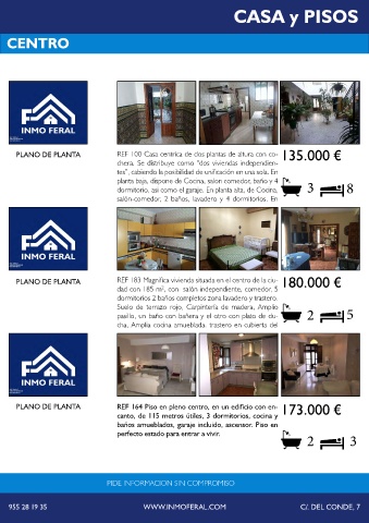 270.000 € REF 203Increíblemente esta casa de siete dormitorios PLANO DE PLANTA PLANO DE PLANTA REF 164 Piso en pleno centro, en un edificio con en- 173.000 €