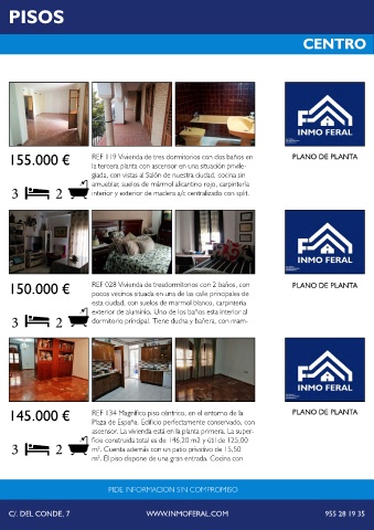 150.000 € REF 028 Vivienda de tresdormitorios con 2 baños, con PLANO DE PLANTA PLANO DE PLANTA REF 041 Piso en tercera planta con ascensor que se 129.000 €