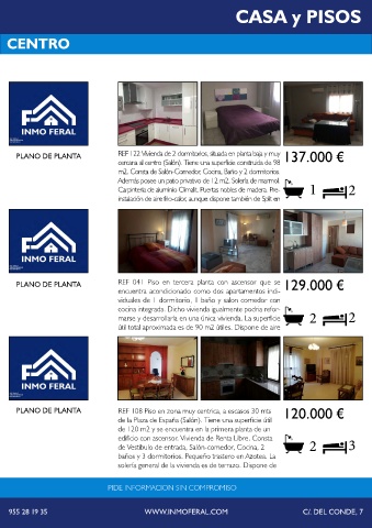 145.000 € REF 134 Magnífico piso céntrico, en el entorno de la PLANO DE PLANTA PLANO DE PLANTA REF 108 Piso en zona muy centrica, a escasos 30 mts 120.000 €