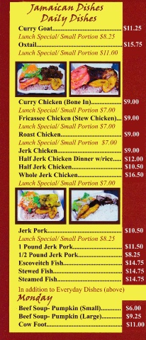 Half Jerk Chicken Dinner w/rice..... $12.00