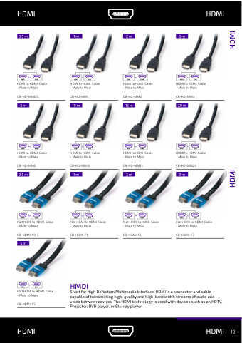 Short for High Definition Multimedia Interface, HDMI is a connector and cable capable of transmitting high-quality and high-bandwidth streams of audio and video between devices. The HDMI technology is used with devices such as an HDTV, Projector, DVD player, or Blu-ray player.