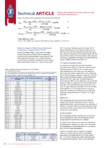 Screening design (Table 7) was used to identify SB, Top Coat: EV-AQ mixed with Acrylic Resin and