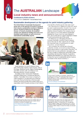 Australia’s paint industry, as well as local and Development Goals when they were released in